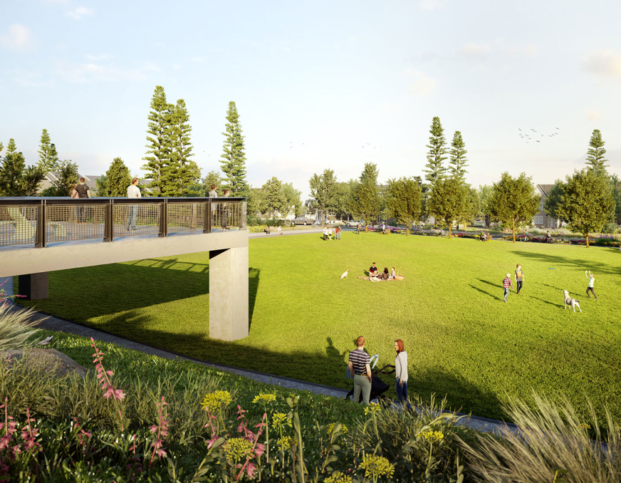 An innovative reimagining of the traditional storm water system, Storm Park expands on the success of Nautilus concept systems deployed in award-winning spaces like Dale Hodges Park to create a massive 32-acre wetland naturalized environment supportive of local wildlife while offering residents trails, public plazas, boardwalks, and viewpoint lookouts to enjoy.