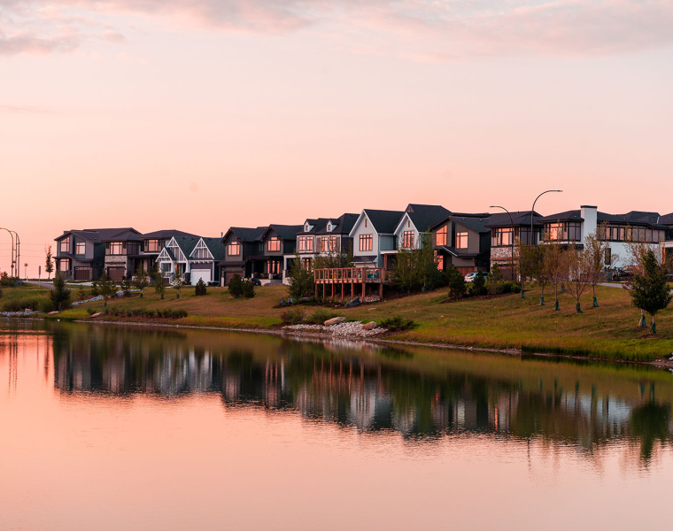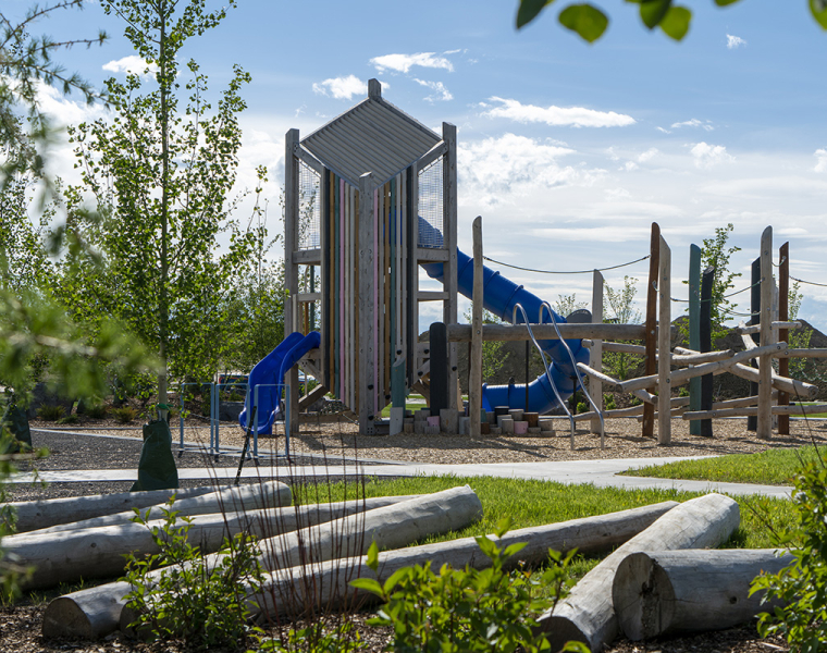Inspired by tarns, proglacial lake formations unique to mountain environments, Skyline Pond anchors Alpine Park’s northeast corner and offers dramatic views of Calgary’s downtown core and mountains to the west as the land drops toward Fish Creek Park. Residents can enjoy several vantage points and rest areas around the park, or admire the beautiful architecture of the overlooking homes along Bluerock Way SW.