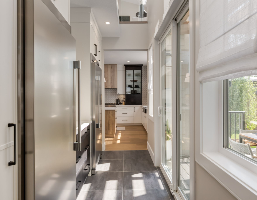 The passthrough butler's pantry is not only convenient for access to kitchen and barbeque, but it also keeps the prepping area out of sight and putting away groceries easy. Ample storage, fridge, counter for toasters and coffee makers all elevate your cooking experience and allow your kitchen to shine without the clutter.