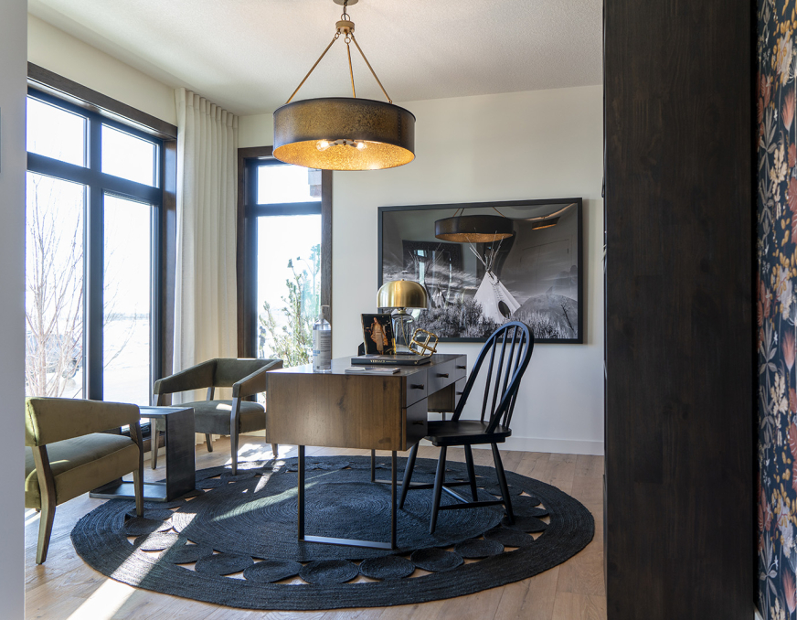 A dramatic, inspired workspace greets you as you enter the Pinnacle, serving as the ultimate place to both work from home or take care of your daily errands.